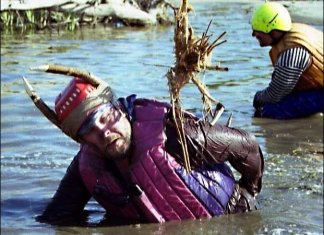Мне кто-то говорил, что байдарки не переворачиваются. И вот, пожалуйста - одна уже тонет! Мимо проплывают весла и гарны хлопцы. Все бросаются их спасать, а матроса - то есть меня - высаживают на остров. Нашу лодку здорово сносит по струе и кажется, что она уйдет без меня. Пытаюсь докричаться до Хозяев, но Порог орет громче. Хозяйка что-то говорила о том, что все собаки умеют плавать. Мне шесть месяцев и я впервые вижу воду. Но делать нечего - прыгаю в валы. Всеми лапами и ушами, кажется, тоже, гребу к нашей байдарке. Дальше ничего не помню. Вроде бы, всех спасли. Свои слова насчет крыс Хозяйка взяла назад.