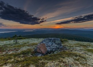 Суперпозицию выданных мной необходимых условий искали минут пятьдесят. Нашли - плоская, немного наклоненная плита, три на четыре метра, поросшая мхом. Палатку поставить есть где. Дрова, конечно, еще веселее, чем на прошлой стоянке, но больше я не заедался, выезжая на смирении. Пока суд да дело, перекусили. Во время еды Славка, вернувшийся с разведки, обнаружил под камнем удочку, припрятанную, видимо, каким-то постоянным посетителем этих мест. Удочку решили взять напрокат.
