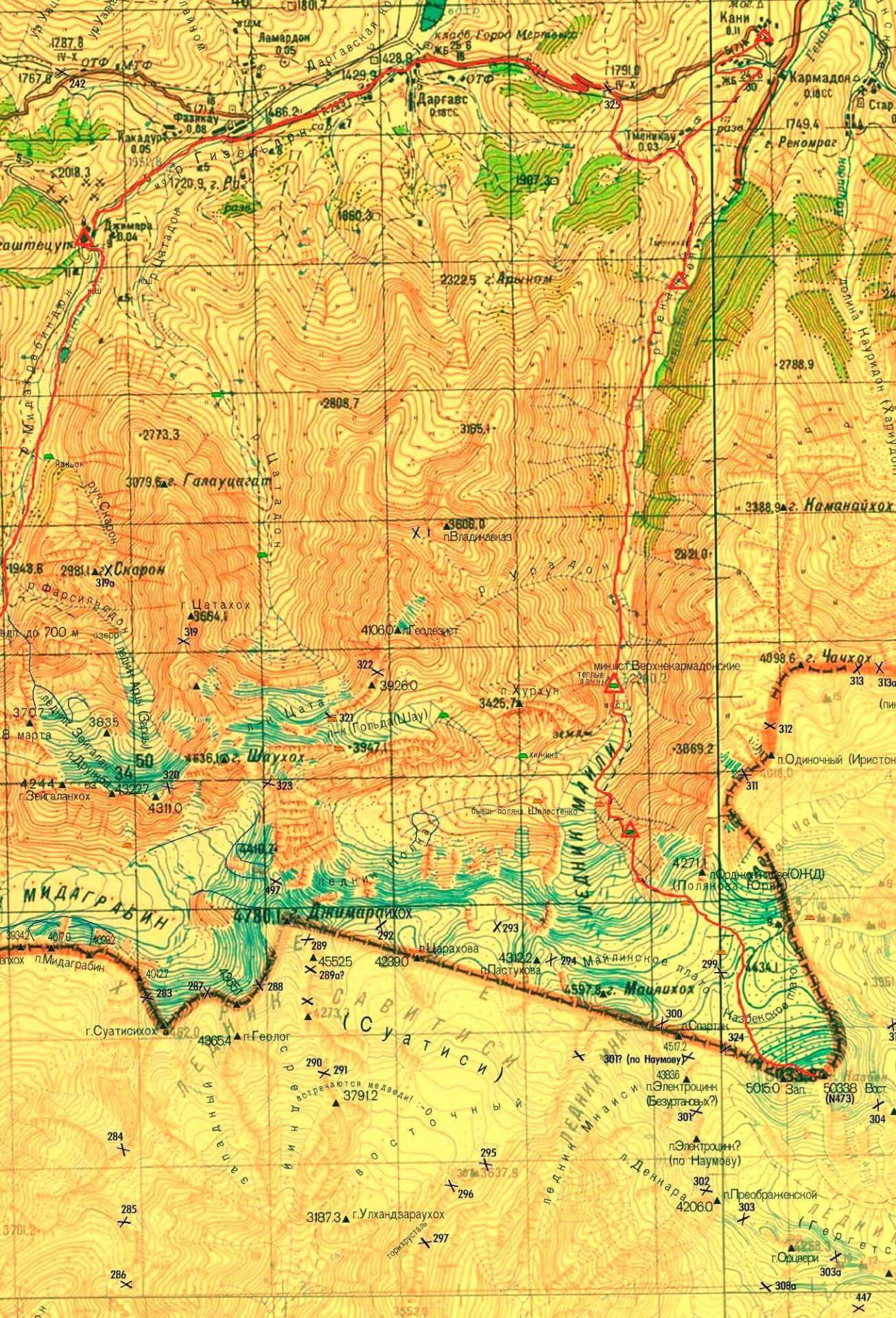 - из долины Кармадон - до погранпоста у пос. Тменикау.