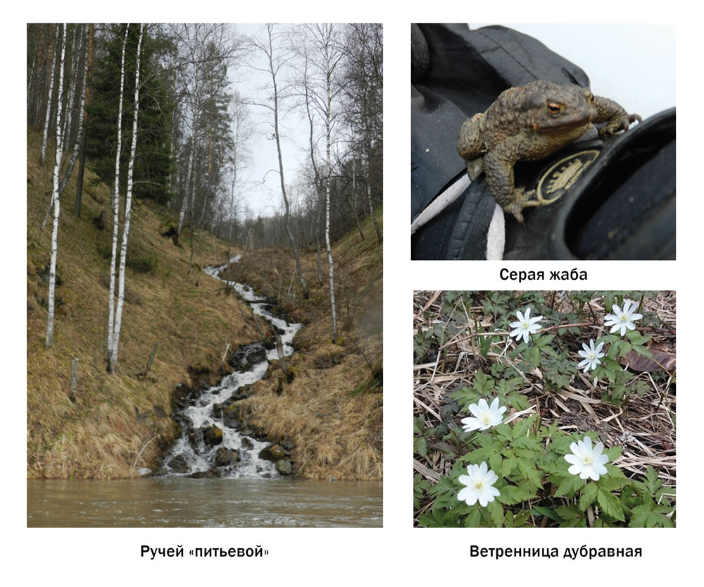 На реке часто встречались стайки уток: чирок-трескунок и большой крохаль. Стайки крохалей состояли из одних самок. Из земноводных удалось встретить серую жабу. Травы еще не поднялись, лесная подстилка состояла почти полностью из ветреницы дубравной. На Урале её называют подснежником.