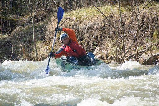 Еще раз просмотрели намеченный для сплава участок реки и занесли каяки на 500 метров вверх по течению. Вдоль речки идет узкая тропинка через кустарник, по ней и заносили. Проходить решили по очереди, выставив страховку спас. концом в месте слияния Сарышты с Лемезой.Прохождение Сарышты