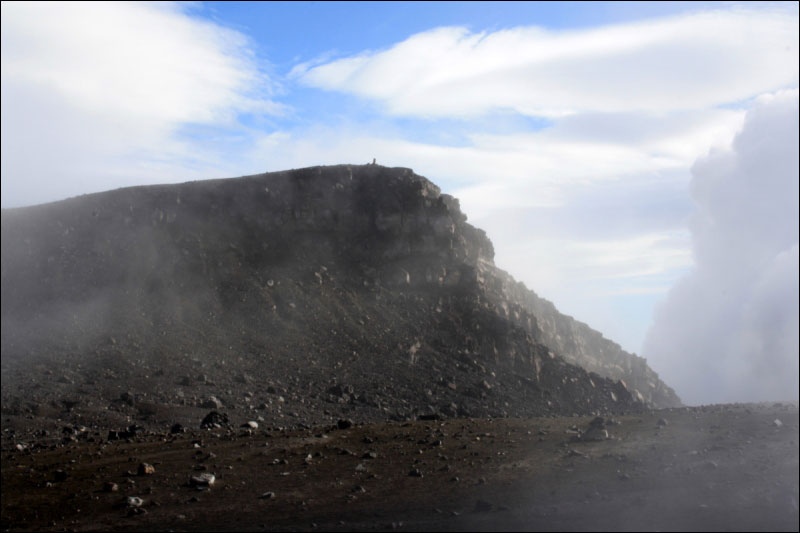 Надо сказать, что если на небе есть хоть одно облачко, то оно непременно будет сидеть на вашем любимом вулкане, так что "почти ясная" погода ничего не гарантирует, а она у нас была совсем даже не ясной.