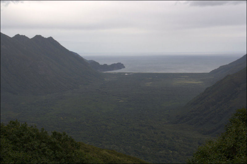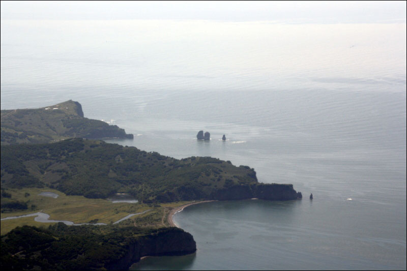 Была неплохая погода, отличные виды; отдохнули, искупались, поглядели на каланов и местных "хомячков", а к вечеру и на медведя, который приходил к рыбакам воровать рыбу. Саша сходил с рыбаками на другую сторону бухты за чистой водой. Рыбаки поделились с нами рыбой (варили уху, пекли в фольге, объелись, всю съесть не удалось) и угостили икрой (солёной). У них были спутниковые телефоны, но сломались. Речка в устье относительно глубокая (похоже, по пояс), но спокойная. Перемычка до Вилючинской бухты скалистая, но, по словам рыбаков, люди могут пройти при помощи висящих там верёвок, а медведи - просто так :) Рыбаки рассказали, что в 50х годах в бухте жило 1500 человек, но цунами полностью уничтожило посёлок.
