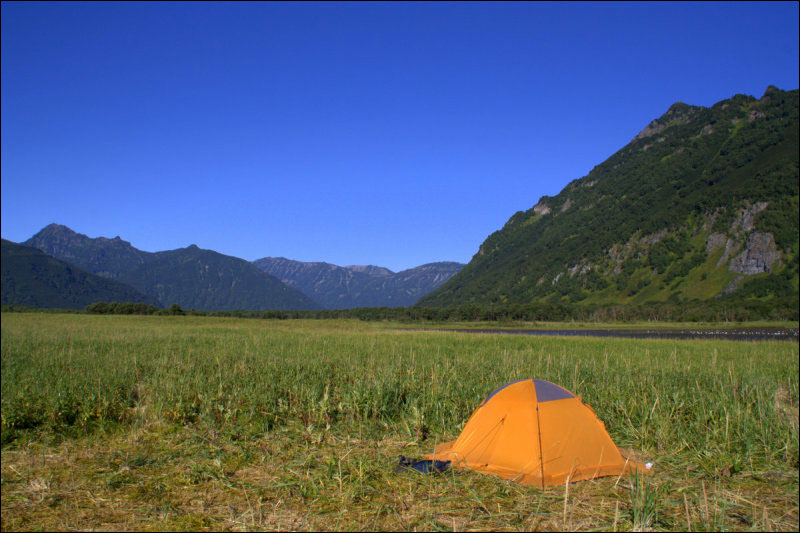 Постарались максимально замаскировать лагерь уксусом; несмотря на близость "медвежьей" реки Вилючи (600 м по прямой) и наше отсутствие во время радиалки, за следующие двое суток никто на лагерь не покусился.