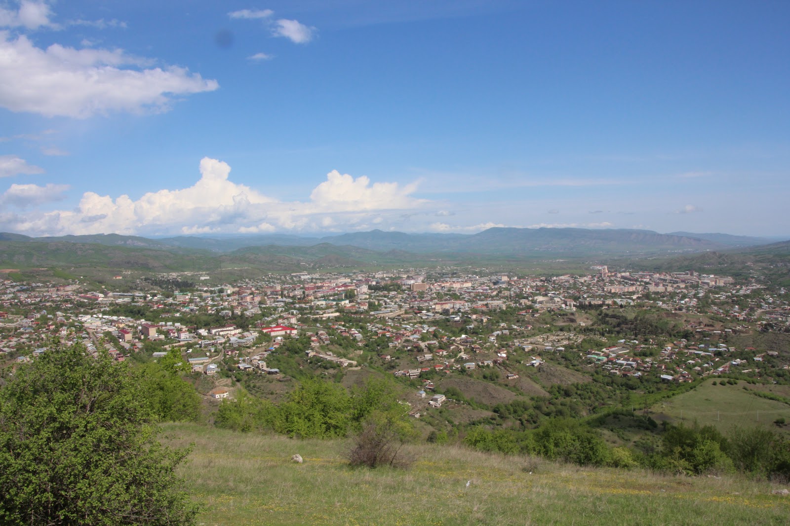 И начался нудный, жаркий подъем в сторону Шуши.  Степанакерт, как на ладони.