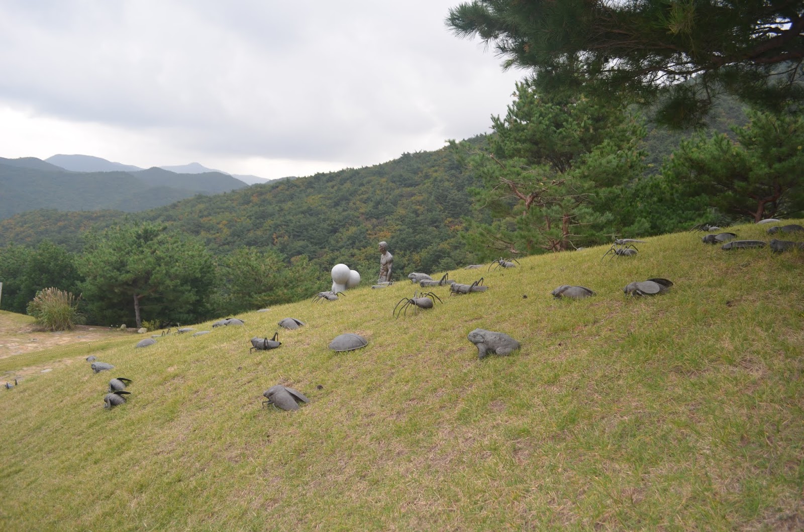 В Канныне есть большой музей современного искусства Halla Art World (N 37º42.363' E 129º00.721). В хорошую же горку нам пришлось забраться, чтобы попасть в этот музей. Зато на входе нас встретил с детства знакомый Винни Пух (наш, родной, из советского мультика!)