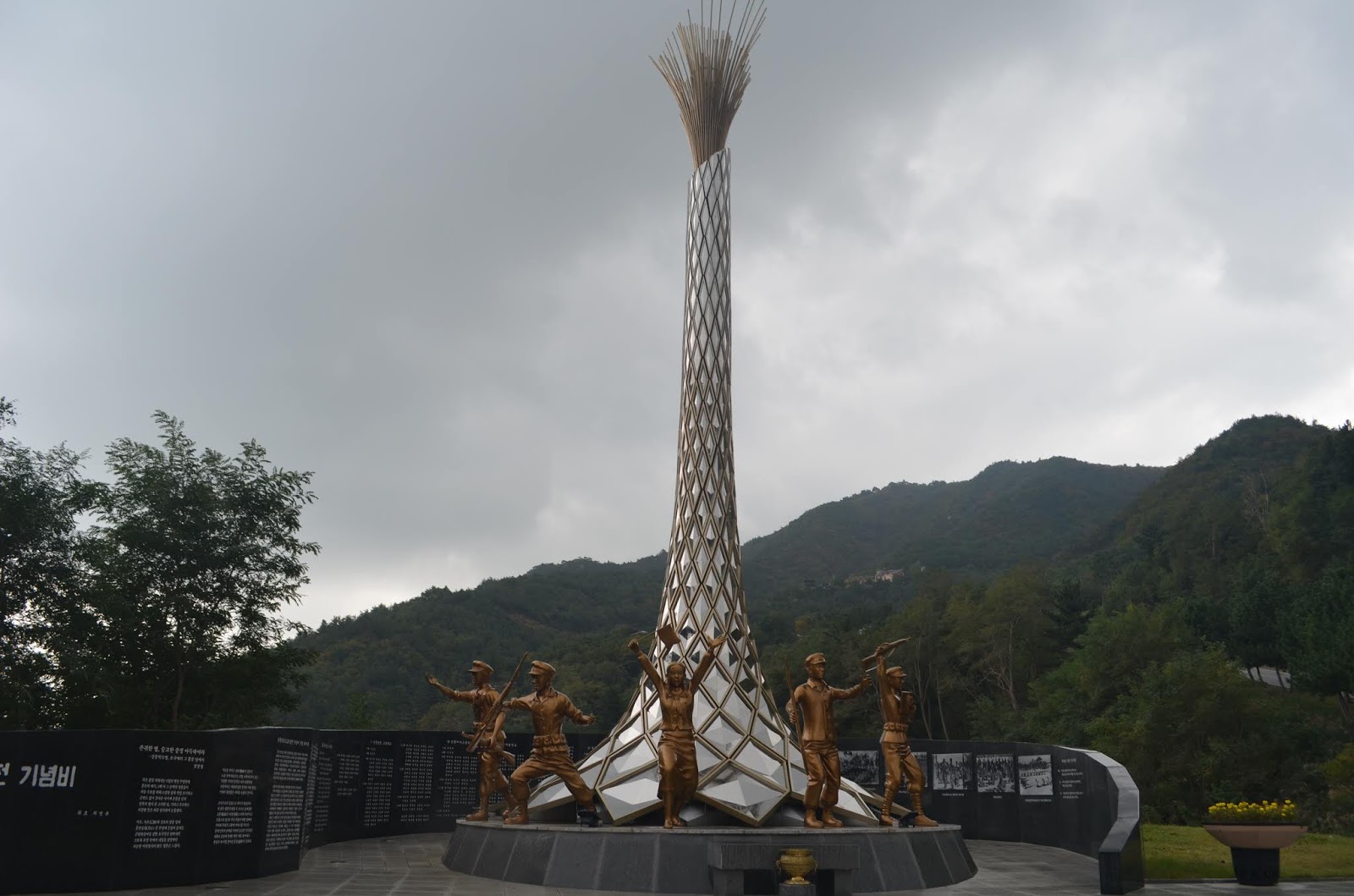 Как раз на въезде в Каннын (или на въезде в одну из частей Каннына?) установлен памятный мемориал, о котором я писала выше (N 37º43.395' E 128º59.843). На мемориале перечислены имена и фамилии северокорейских партизан, подводная лодка которых села на мель вблизи южнокорейских берегов. Собственно и музей подводных лодок находится недалеко от этого места.