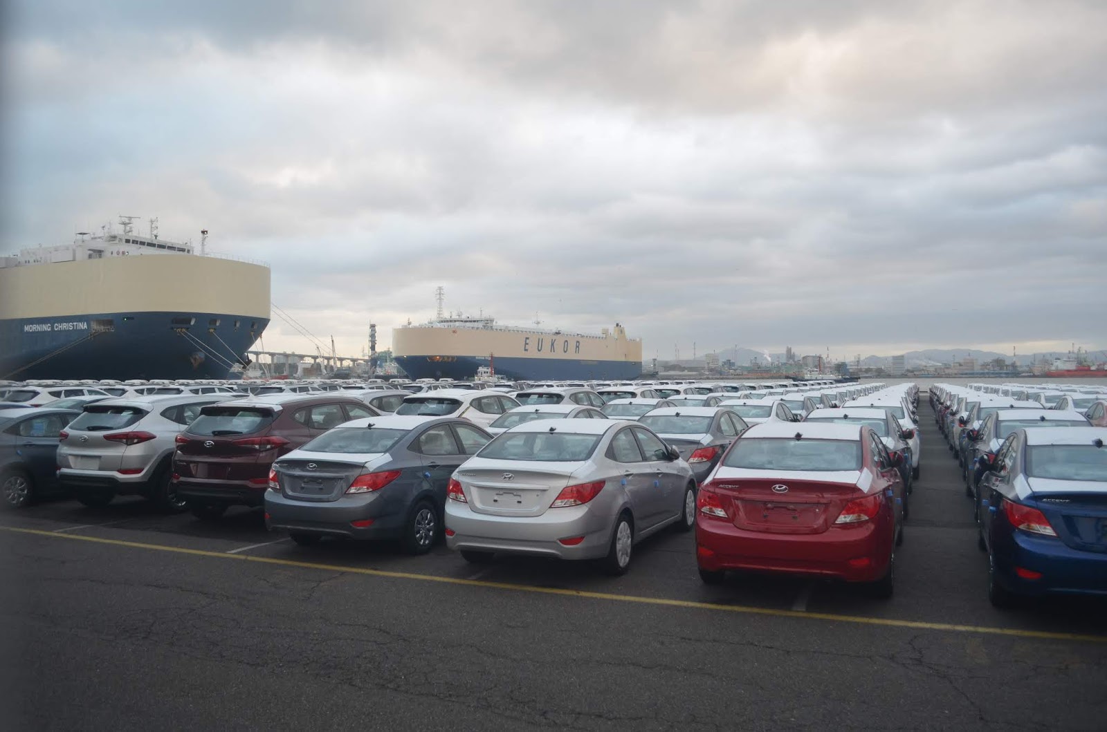 Огромные пароходы и тысячи новеньких машинок Hyundai, готовые к отправке в другие страны? Или в другие города Кореи?